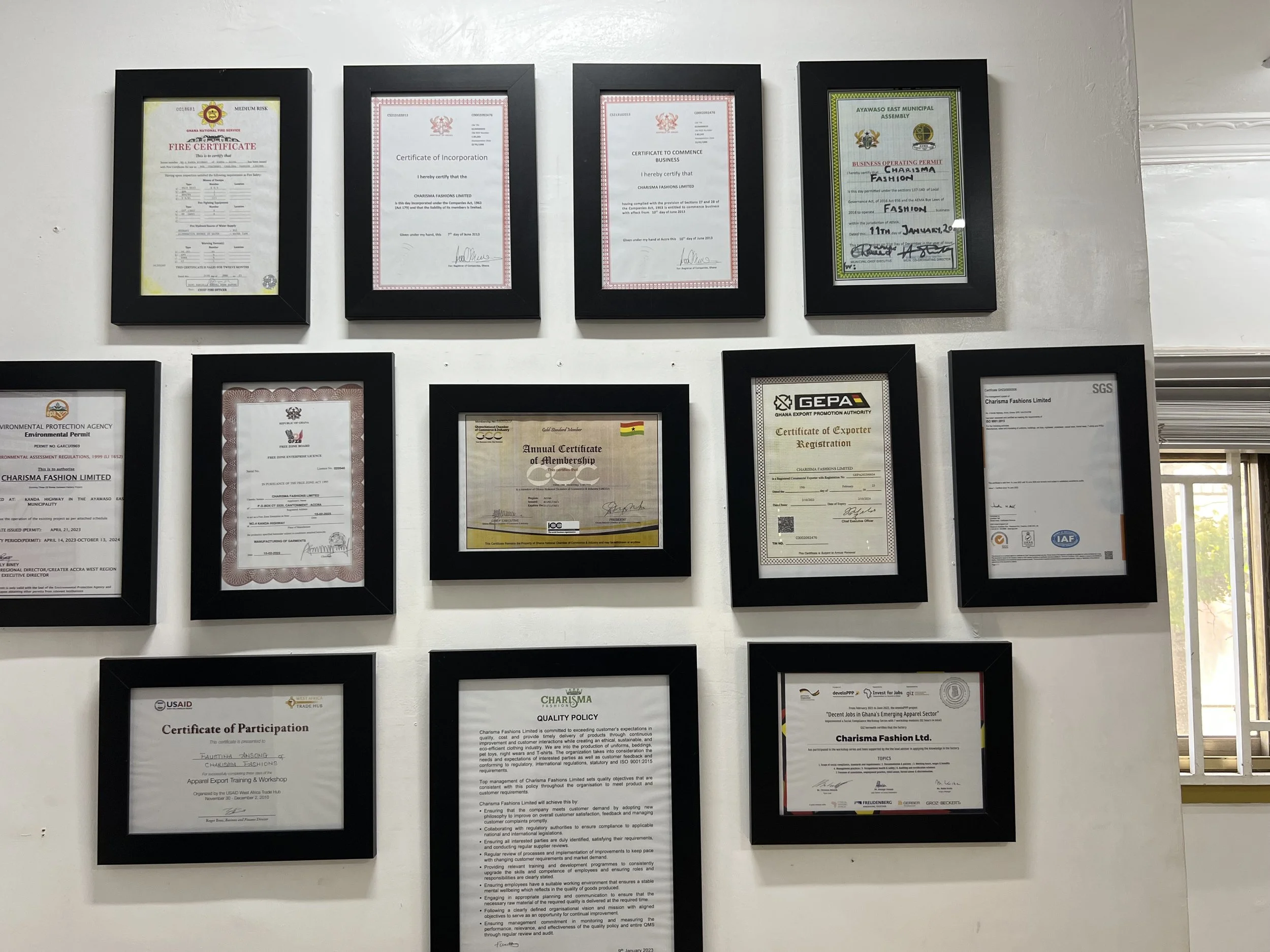 Ghana’s Free Zones regime and an active apparel manufacturers association create a supportive ecosystem for exporters. Charisma Fashion is registered under the Ghana Free Zones Authority and is a member of AGAM, the Association of Ghana Apparel Manufacturers.